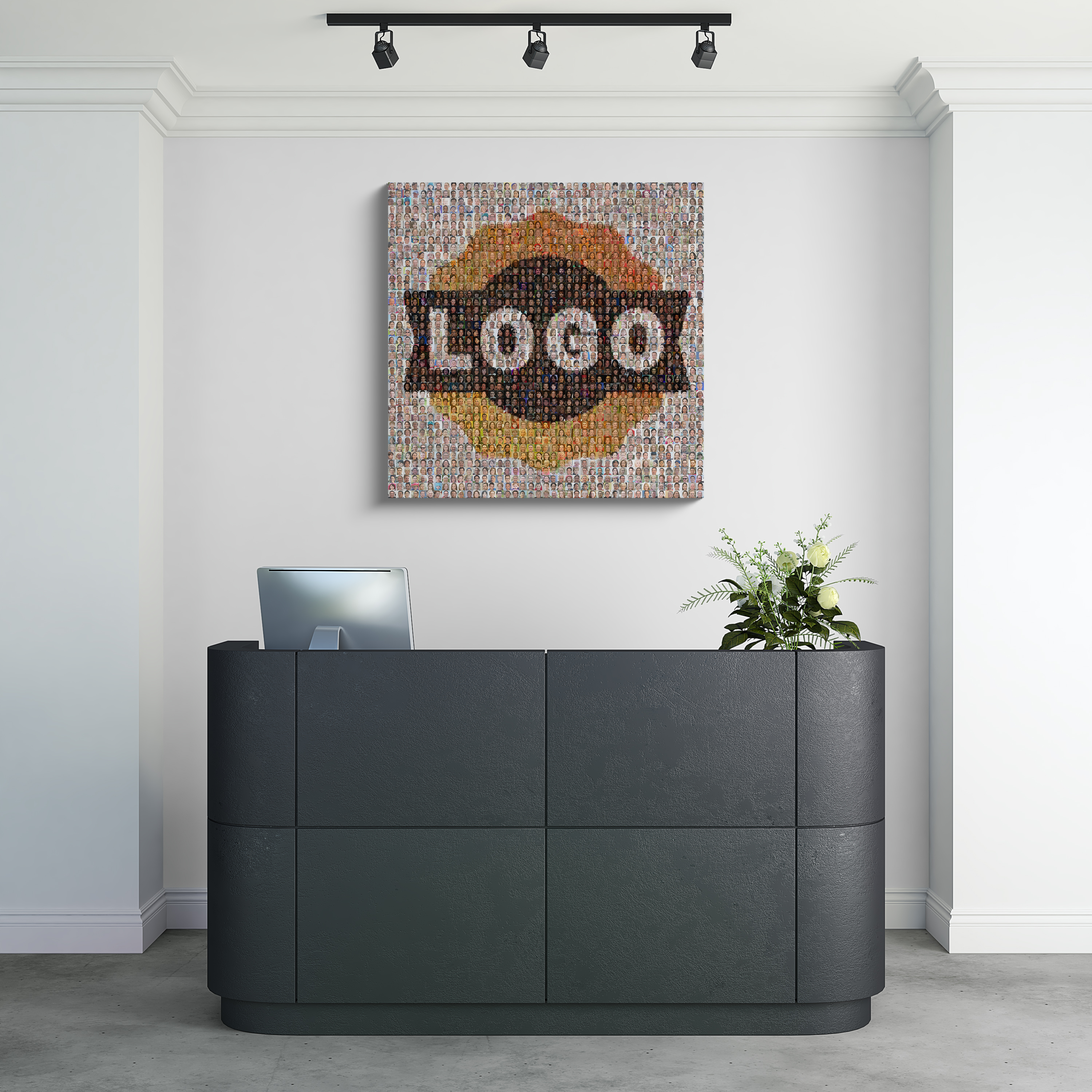 Scopri il tuo nuovo capolavoro personalizzato. Immagina il tuo logo aziendale realizzato attraverso un mosaico di foto di tutti i membri del tuo team. È il modo perfetto per celebrare la comunità della tua azienda e creare un'atmosfera accogliente nel tuo ufficio o nell'area reception. Personalizza questo prodotto adattando le foto dei dipendenti e il logo secondo le tue esigenze, rendendolo ideale per eventi interni o anniversari.