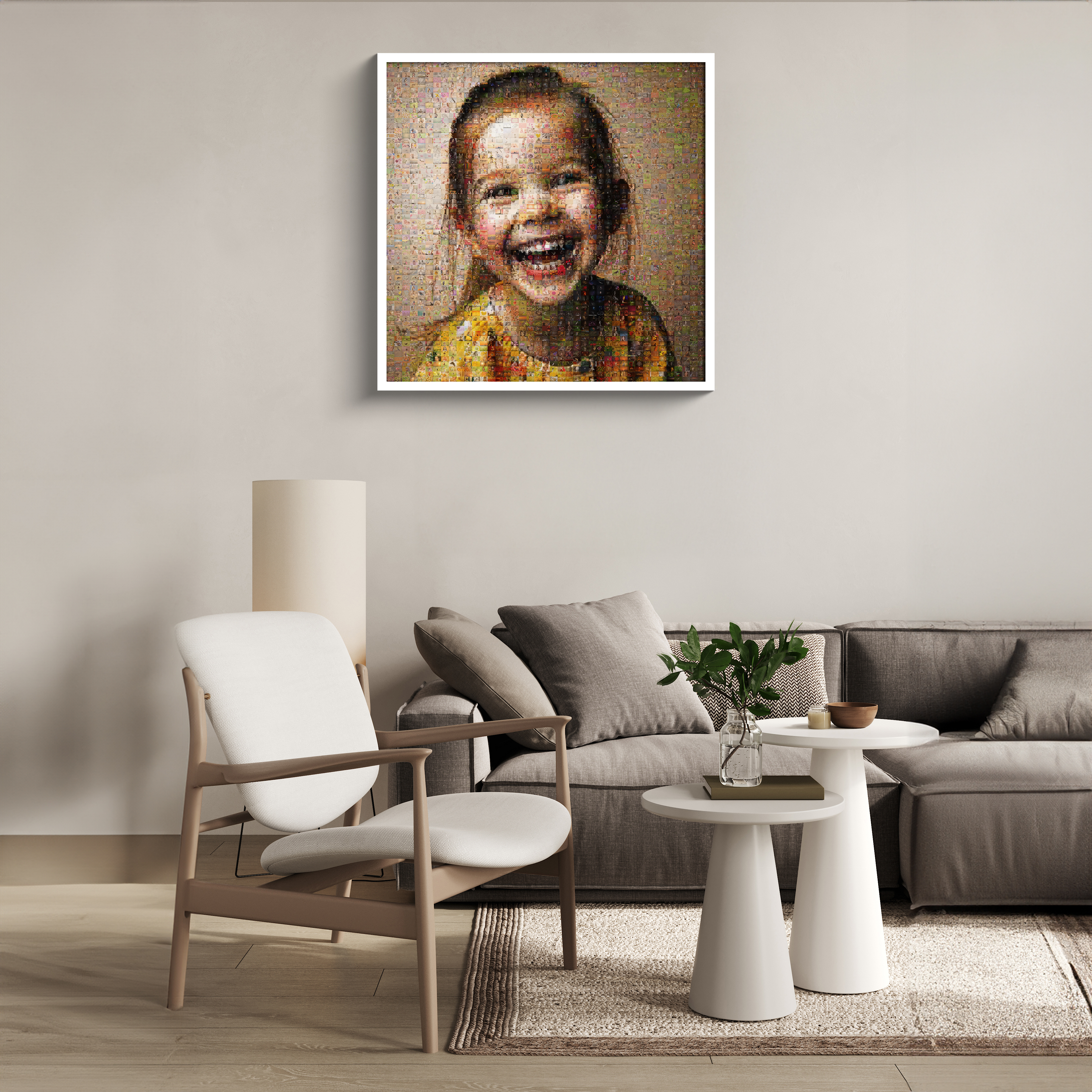 Creare il tuo fotomosaico è semplice. Carica l'immagine principale e le foto che desideri utilizzare come tessere. Noi ci occuperemo del resto, inviandoti una bozza entro un paio d'ore. Se ti piace il risultato, potrai ordinare il tuo fotomosaico come poster, quadro con cornice, tela o altre opzioni disponibili.